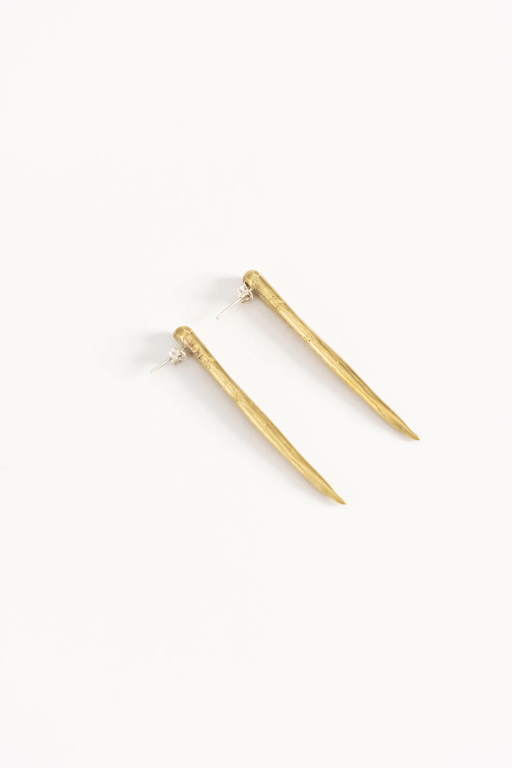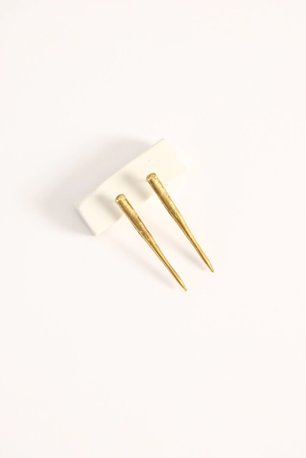 Cada par de aros está cuidadosamente moldeado a mano, lo que garantiza que cada detalle lleve la huella del artesano. Esta terminación con un acabado ligeramente rústico aporta carácter, mientras que el tono dorado del bronce les confiere una elegancia inconfundible, ideal para quienes buscan un accesorio que desafíe lo convencional.