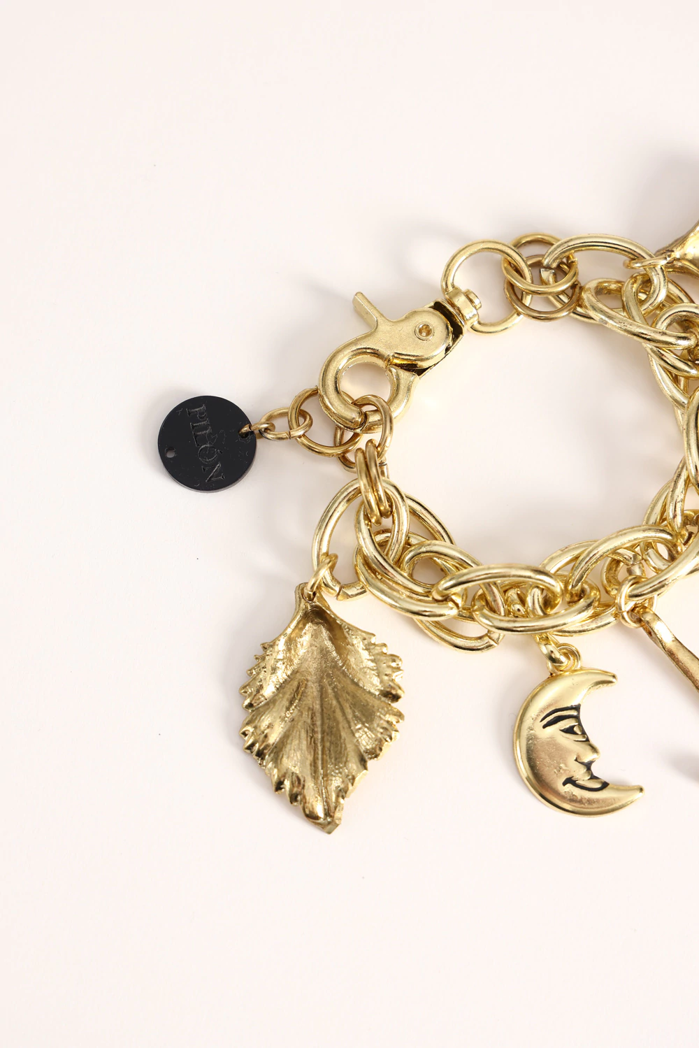 Cada detalle está cuidadosamente elaborado: incluye un mosquetón navy que asegura un cierre firme y práctico, y una selección de maxi dijes combinados que evocan la esencia del mar y la naturaleza, con motivos de hojas, anclas y otros elementos marinos. Estos dijes aportan un toque distintivo y lleno de significado, haciendo de esta pulsera un accesorio con personalidad propia.